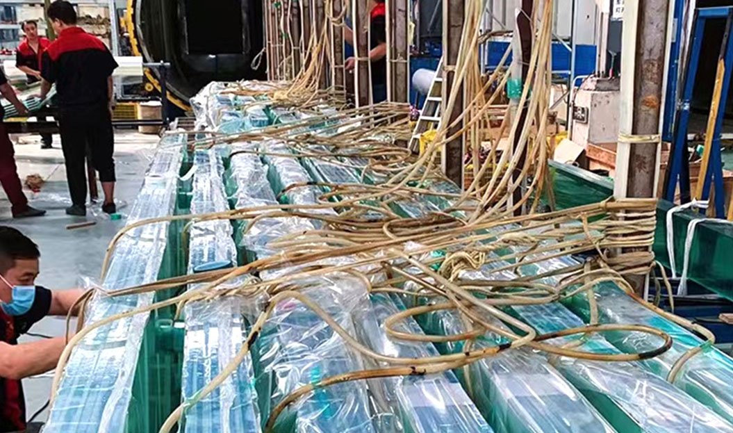 Floor glass belongs to a type of laminated glass,normally it is composed of three or more pieces of glass and organic polymer intermediate film. The intermediate film is placed between every two pieces of glass, and after high-temperature and high-pressure processing, it is bonded into a whole, forming laminated glass.